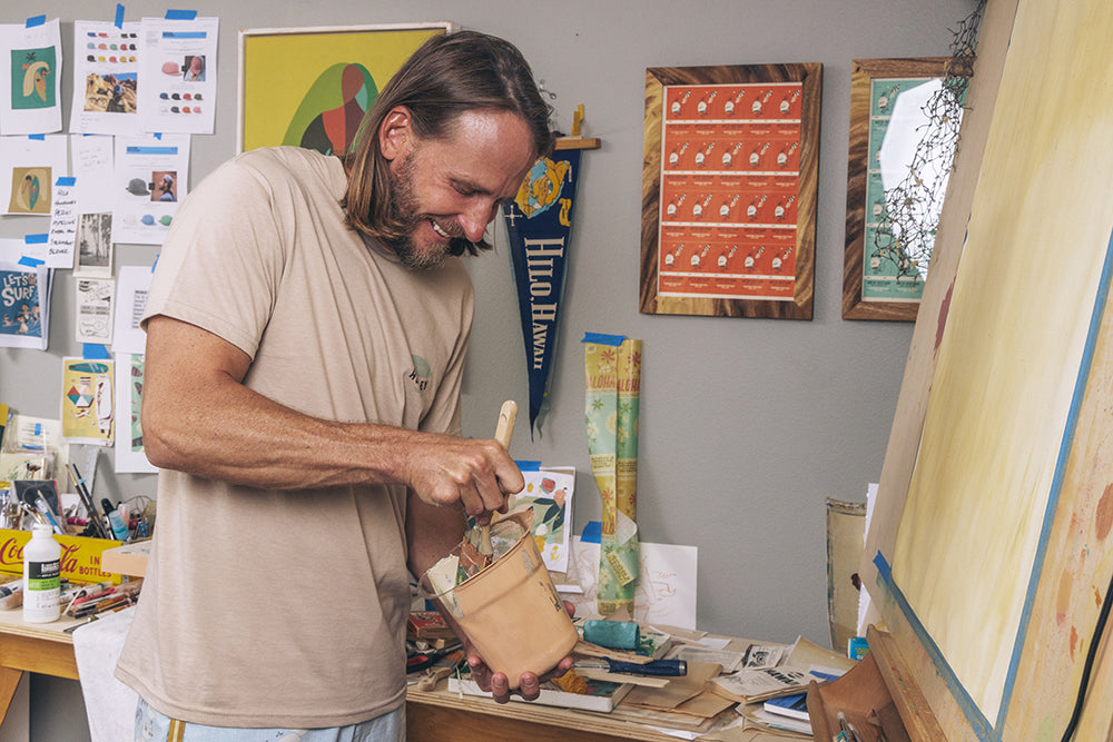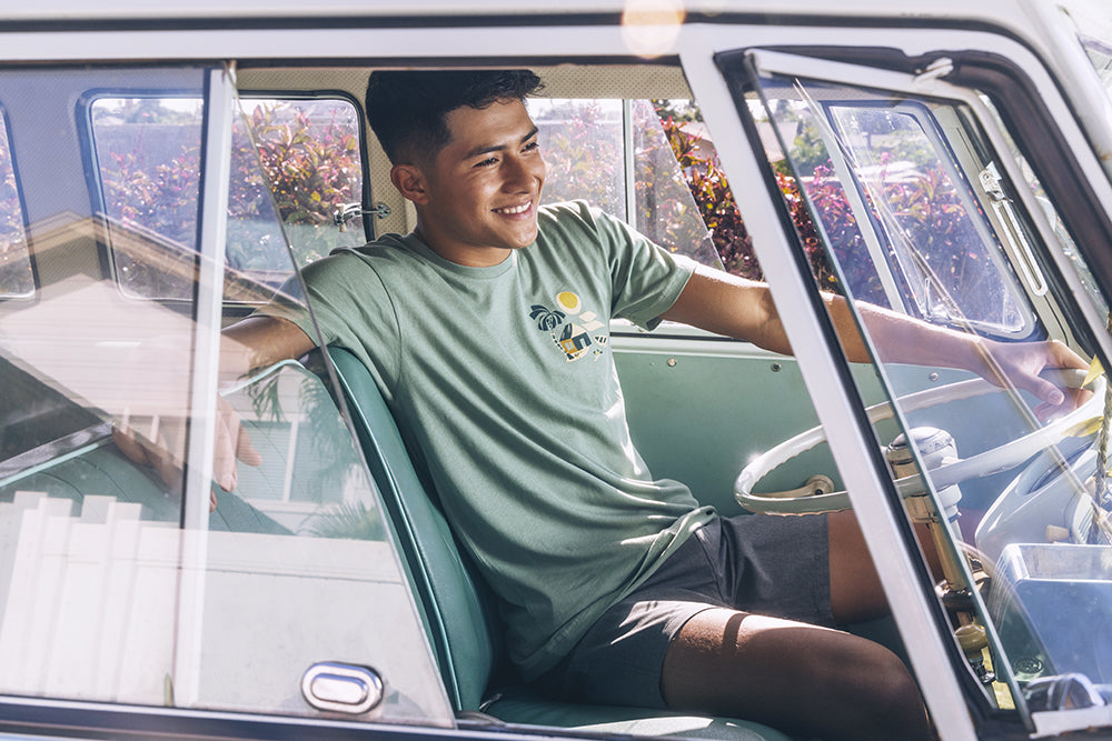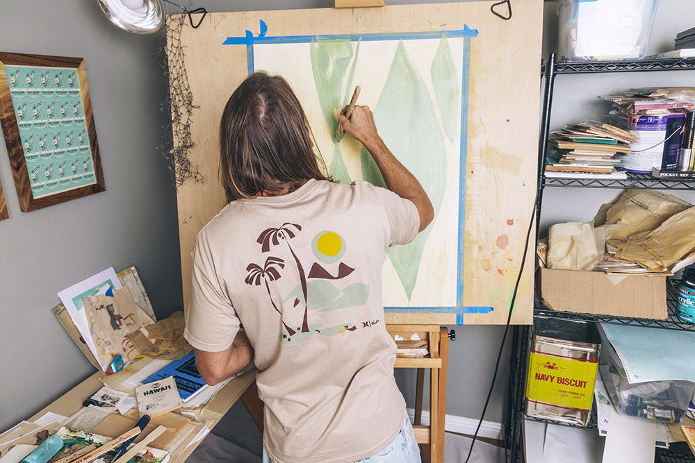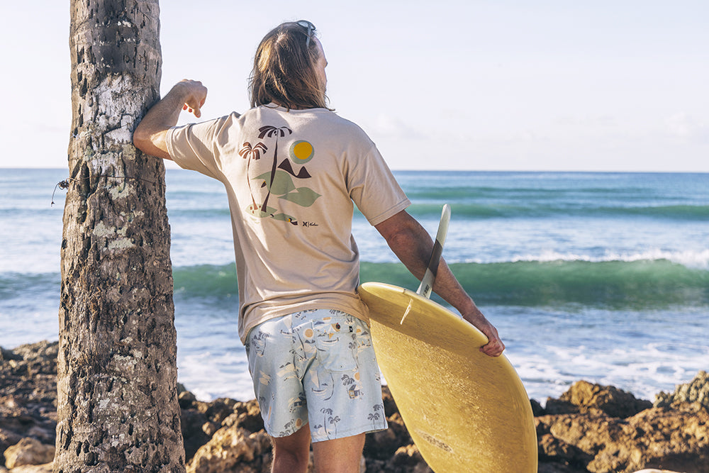 Drawing inspiration from his island home, multidisciplinary Oahu-based artist Nick Kuchar’s designs evoke vintage memories of travel and adventure. He captured these feelings in his latest collaboration with Hurley, The Secret Spot Collection, a series of surf and beach ready styles made with Aloha.